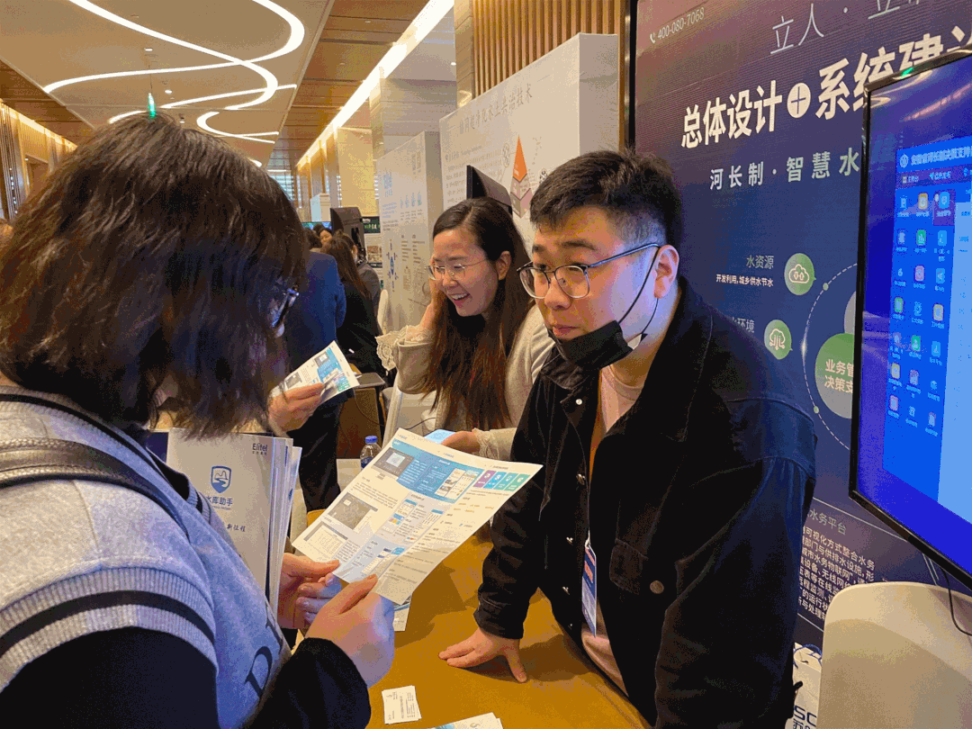 在本次的論壇的展會(huì)上,中水三立主要展示了在河湖長(zhǎng)制決策支持系統(tǒng)中的新技術(shù)、新功能介紹,以及安徽省河長(zhǎng)制決策支持系統(tǒng)平臺(tái)、廣州河長(zhǎng)管理信息系統(tǒng)、數(shù)字巢湖等各地的案例應(yīng)用?,F(xiàn)場(chǎng)參展者紛紛駐足展臺(tái),觀看產(chǎn)品單頁、詢問業(yè)務(wù),深入了解中水三立的產(chǎn)品和服務(wù)。