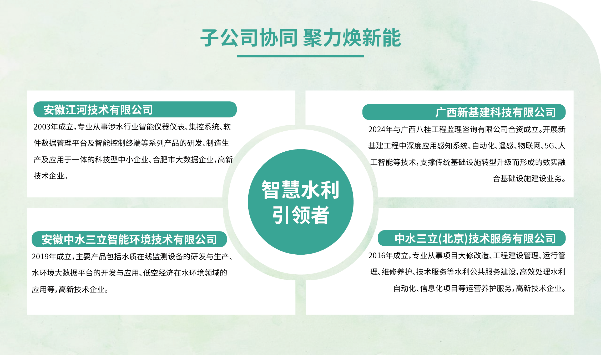 2003年成立安徽江河技術(shù)有限公司,專注涉水行業(yè)智能產(chǎn)品研發(fā)制造與應(yīng)用,是科技型中小企業(yè)與合肥市大數(shù)據(jù)企業(yè);