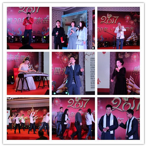 午餐之后,年度表彰暨文藝匯演于14點準時開始,首先進行的是對2016年優(yōu)秀部門、先進部門及先進個人、優(yōu)秀標兵、新銳員工、員工家屬(賢內(nèi)助)等的表彰和頒獎儀式。緊接舉行了各部門、事業(yè)部及分子公司選送的文藝匯演,節(jié)目內(nèi)容豐富多樣,節(jié)目中穿插了多項游戲和抽獎,公司上下積極互動、掌聲不斷,員工家屬踴躍參與、其樂融融,演出過后,由公司行政部主持了豐盛的招待晚宴,中水三立2017年年會在一片歡聲笑語中圓滿落幕。