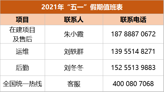 由于公司放假給大家?guī)淼牟槐阄覀兩畋砬敢?,再次感謝大家一直以來對我司的關(guān)注及支持。放假期間,公司投標及在建項目等工作正常進行,各部門已做好工作安排,電話保持24小時暢通,如有需求,請您直接撥打相關(guān)負責人員電話。