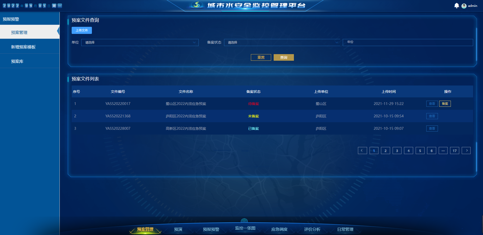 預(yù)案管理: