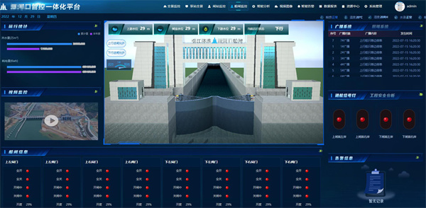 展示閘站的運行和控制信息,涵蓋閘門運行狀態(tài)的監(jiān)測、工程安全監(jiān)測、視頻監(jiān)控、閘門監(jiān)測參數(shù)、運行時長占比、水位分析、告警信息、閘前水位、閘后水位、流量等統(tǒng)計信息。