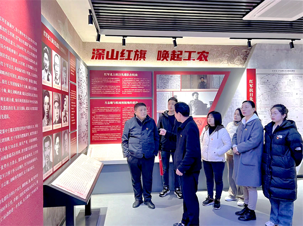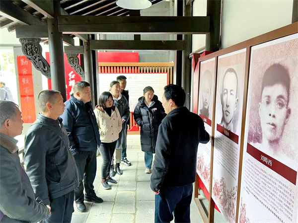 在新棚村村支部書記的講解下,中水三立黨總支一行詳細了解了皖南紅軍總醫(yī)院和紅軍北上抗日先遣隊將領(lǐng)的英雄事跡。在紀(jì)念館內(nèi),詳實的史料、珍貴的文物等展現(xiàn)了新棚皖南紅軍總醫(yī)院在艱苦卓絕的革命歲月里,大批革命志士前赴后繼,為挽救民族危亡、謀求人民幸福進行了不屈抗?fàn)?,讓大家深切體會革命傳統(tǒng),感悟紅色精神。