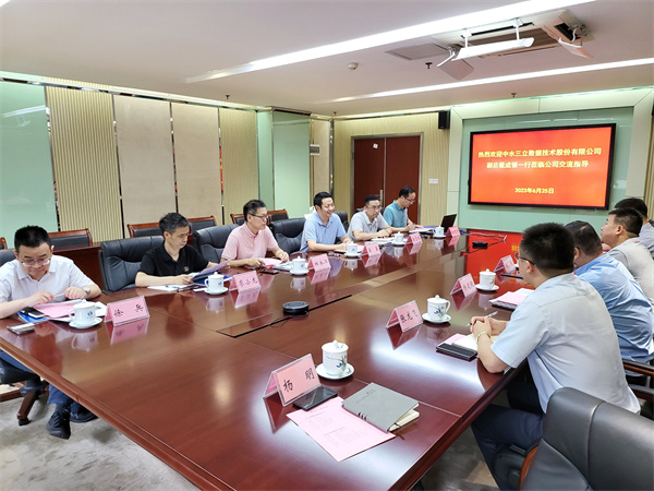 6月25日,中水三立副總裁成銀率隊前往中水珠江規(guī)劃勘測設(shè)計有限公司,就智慧水利、數(shù)字孿生技術(shù)進行座談交流,楊建超副總經(jīng)理等陪同參會。中水珠江規(guī)劃勘測設(shè)計有限公司總經(jīng)理、黨委副書記蔣翼,經(jīng)營處處長杜永江,工程數(shù)字技術(shù)研究院院長傅志浩,水利水電規(guī)劃院數(shù)字流域研究中心主任廖小龍,工程數(shù)字技術(shù)研究院智慧水利技術(shù)中心主任楊楚驊,廣州珠源信息技術(shù)有限公司總經(jīng)理徐兵等相關(guān)部門負責人參加座談。