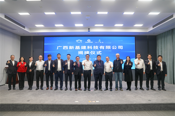 中水三立董事長李靜、副總經(jīng)理張???,北部灣港集團副總經(jīng)理潘曉斌,八桂監(jiān)理黨委書記、董事長嚴振石共同為廣西新基建科技有限公司揭牌,八桂監(jiān)理黨委副書記、總經(jīng)理吳飚主持儀式。北部灣港股份、華錫有色、西江集團、陸海新能、北港西江港口、北港物流等相關人員參加揭牌儀式。