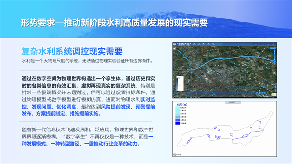 特邀水利行業(yè)權(quán)威專家,就數(shù)字孿生水利建設(shè)的應(yīng)用實踐及發(fā)展思考做專題分享。近年來數(shù)字孿生水利獲得了難得的發(fā)展機(jī)遇,同時也面臨嚴(yán)峻挑戰(zhàn),我們要堅持“需求牽引、應(yīng)用至上”,推進(jìn)數(shù)字孿生水利健康發(fā)展,為新階段水利高質(zhì)量發(fā)展提供有力支撐和強(qiáng)力驅(qū)動。