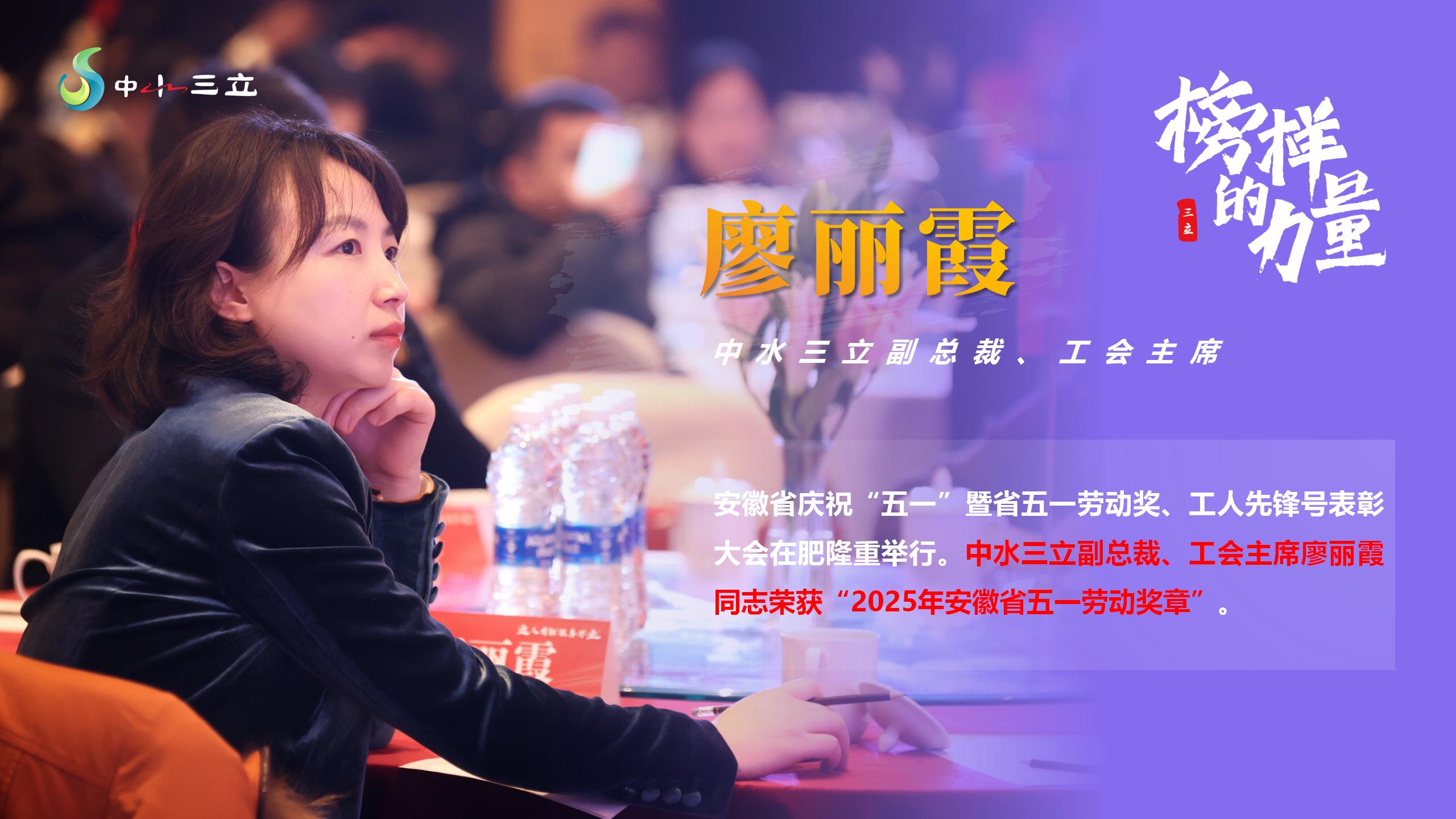近日,安徽省慶?!拔逡弧濒呤∥逡粍趧营?、工人先鋒號表彰大會在合肥隆重舉行,充分發(fā)揮勞模先進的榜樣作用,奮力譜寫中國式現(xiàn)代化安徽篇章貢獻智慧和力量。中水三立副總裁、工會主席廖麗霞同志榮獲“2025年安徽省五一勞動獎?wù)隆薄?/span>