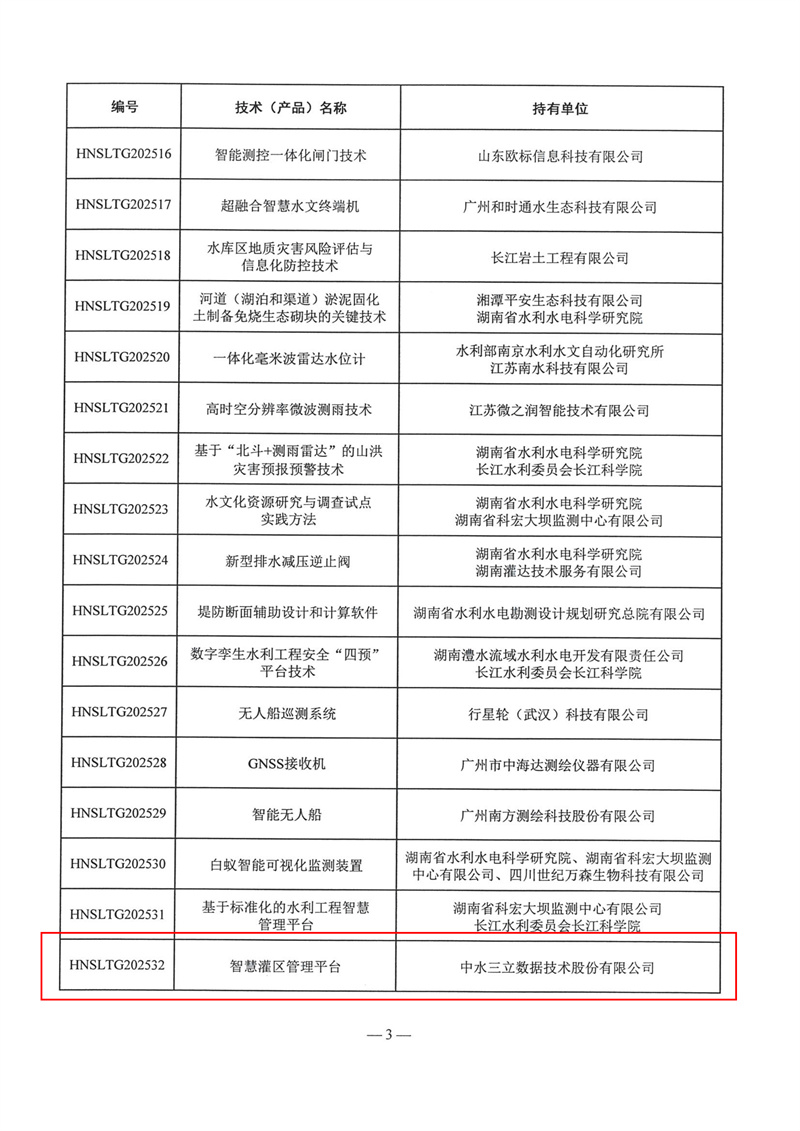 本次推介會(huì)同步發(fā)布了《湖南省2025年度水利先進(jìn)實(shí)用技術(shù)(產(chǎn)品)推廣名錄》,經(jīng)嚴(yán)格篩選與評(píng)審,中水三立自主研發(fā)的智慧灌區(qū)管理平臺(tái),憑借先進(jìn)性、實(shí)用性和推廣價(jià)值成功上榜,獲得省級(jí)水利主管部門及行業(yè)專家的權(quán)威認(rèn)可。