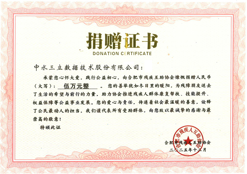 會(huì)上集中通報(bào)了社會(huì)各界愛(ài)心捐贈(zèng)情況。中水三立始終秉持公益初心,積極履行社會(huì)責(zé)任,主動(dòng)捐贈(zèng)伍萬(wàn)元愛(ài)心款項(xiàng),定向用于合肥市殘聯(lián)一樓原就業(yè)服務(wù)大廳的適應(yīng)性改造,助力打造更為便捷、舒適、人性化的殘疾人服務(wù)環(huán)境,讓助殘關(guān)愛(ài)落地見(jiàn)效。