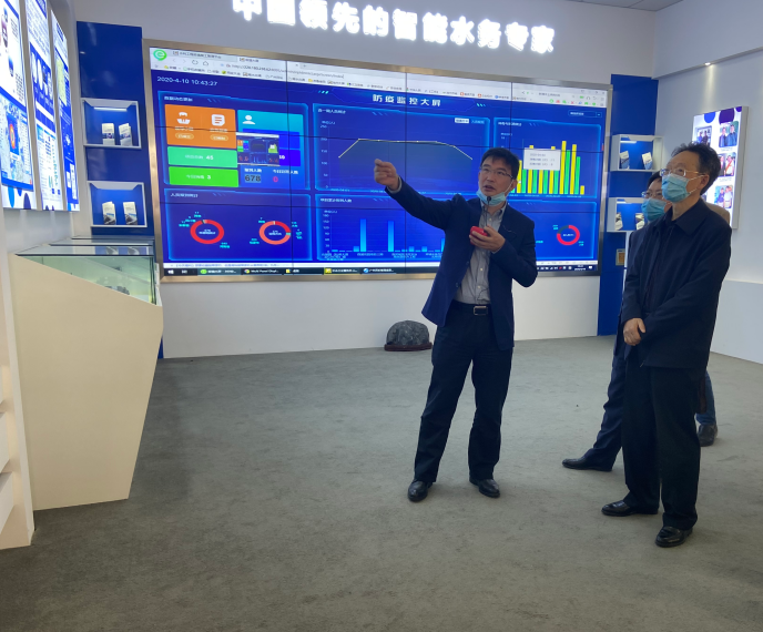 中水三立總經(jīng)理李兵對徐處長一行的到來表示熱烈歡迎,并陪同參觀公司園區(qū),在一樓展廳總經(jīng)理匯報了企業(yè)整體的發(fā)展情況以及2020年受新冠肺炎疫情影響企業(yè)的復(fù)工復(fù)產(chǎn)情況,并展示了中水三立針對疫情復(fù)工自主研發(fā)的水利工程復(fù)工防疫管理平臺,真正實現(xiàn)了疫情防控和復(fù)工復(fù)產(chǎn)“兩不誤”!