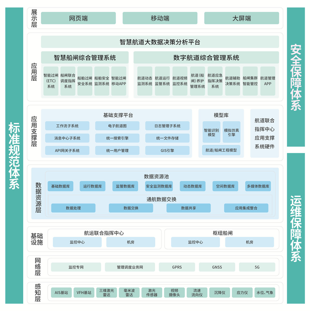 建設(shè)航道工程建管系統(tǒng)和航道工程運(yùn)管系統(tǒng)。航道工程建管系統(tǒng)將航道工程建設(shè)全過程主要環(huán)節(jié)的文件、數(shù)據(jù)等通過網(wǎng)絡(luò)終端和平臺(tái)生成、傳遞、交換及存儲(chǔ),從勘察設(shè)計(jì)、招投標(biāo)、施工過程、質(zhì)量、安全、進(jìn)度、支付、合同、檢查驗(yàn)收、施工現(xiàn)場(chǎng)安全等角度為行業(yè)主管單位、項(xiàng)目法人以及各參建單位之間搭建高統(tǒng)一的工作平臺(tái);航道工程運(yùn)管系統(tǒng)對(duì)航道各類動(dòng)靜態(tài)工程信息進(jìn)行統(tǒng)一管理,加強(qiáng)包括船閘在內(nèi)的水利航運(yùn)工程管理,保障船閘工程的安全與正常運(yùn)行,實(shí)現(xiàn)船閘各系統(tǒng)、設(shè)備等對(duì)象全過程運(yùn)行維護(hù)、管理和監(jiān)督,提升船閘工程專業(yè)化、精細(xì)化和標(biāo)準(zhǔn)化管理水平。